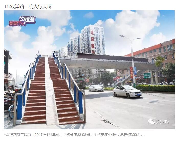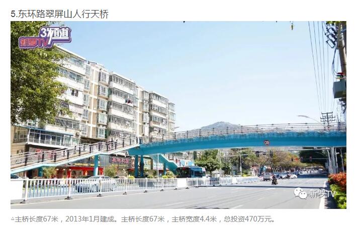 年來,市委、市政府加大市政基礎(chǔ)設(shè)施投入,大力推進人行天橋建設(shè)。截止2017年底,中心城市共興建20余座人行天橋。