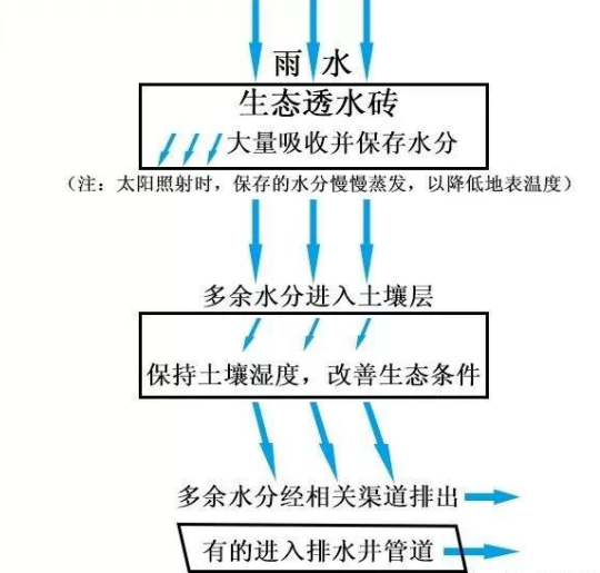 什么是海綿城市?簡言之,就是城市像海綿一樣有彈性,能吸水、蓄水、排水,實(shí)現(xiàn)水循環(huán)利用、有效防內(nèi)澇。鋪設(shè)生態(tài)透水磚,是除雨污分流改造外,我市海綿城市建設(shè)的一個(gè)重點(diǎn)和亮點(diǎn)。鋪有生態(tài)透水磚的人行道,看上去好像與鋪設(shè)普通磚的人行道沒什么兩樣,但仔細(xì)一看就會發(fā)現(xiàn)有所不同,生態(tài)透水磚表面布滿小孔,而普通磚表面比較光滑。這是因?yàn)樯鷳B(tài)透水磚以礦渣廢料、石屑、普通硅酸鹽水泥為主要原料,設(shè)計(jì)有一定孔隙率,經(jīng)高頻振動加壓而成,普通磚則主要用石粉廢渣、低標(biāo)號水泥等制成。下雨時(shí),生態(tài)透水磚能大量吸收并保存水分,達(dá)到飽和狀態(tài)后保存不了的多余水分則透過磚體進(jìn)入土壤層,從土壤層出來后的多余水分最后經(jīng)相關(guān)渠道排出,有的通過排水井管道排出。而普通磚只能吸收少量水分,大部分水經(jīng)由地表流掉,易導(dǎo)致路面積水。