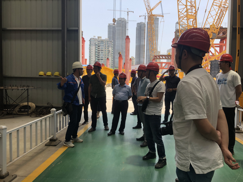 隨后,考察人員前往第二站中鐵大橋局七公司承建的江漢七橋項目,該項目負(fù)責(zé)人帶領(lǐng)考察人員觀看了江漢七橋的動態(tài)視頻,隨后一行人深入施工現(xiàn)場,參觀了該項目的鋼筋加工車間、施工工藝流程及安全文明施工標(biāo)準(zhǔn)化等,并進行了深入交流探討。