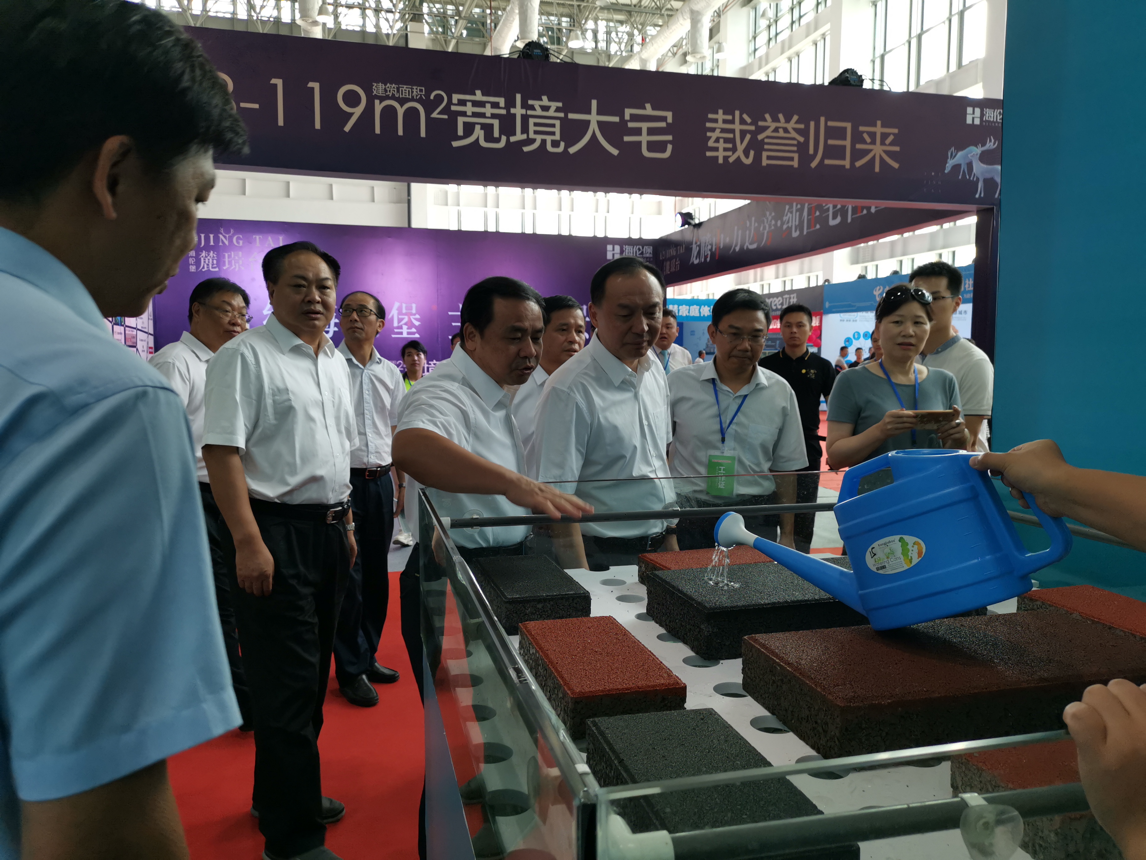 8月16日—18日,龍巖天潤龍城新型建材有限公司參加龍巖市建筑產(chǎn)業(yè)發(fā)展大會建筑新型材料展,展會上公司發(fā)放了公司產(chǎn)品宣傳冊,播放公司產(chǎn)品宣傳片,擺放公司產(chǎn)品樣品并在現(xiàn)場進(jìn)行透水效果演示,市委許維澤書記一行在巡視展館中饒有興致地觀看聽取了公司產(chǎn)品性能情況介紹,對透水建材產(chǎn)品贊譽(yù)有加
